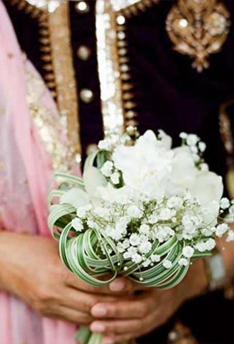 Marigolds were introduced in India by the Portuguese. These white, yellow and orange flowers known as "Genda" in Hindi have found a huge spiritual significance in Indian weddings. Marigolds, a symbol of positive energy and brightness, are often used to bestow blessings onto the newlywed couple for a prosperous life ahead.